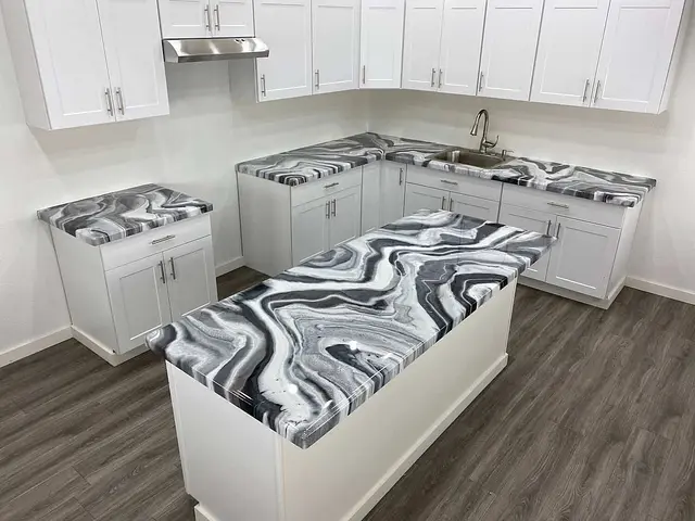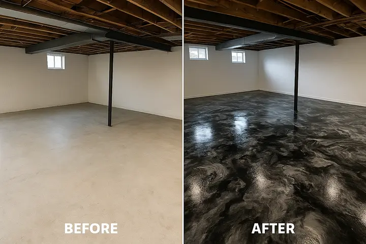 Stylish metallic epoxy floors with expert vinyl and hardwood installation.